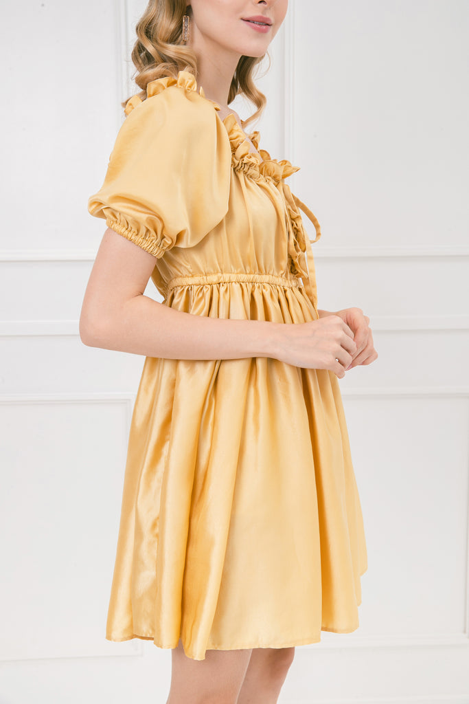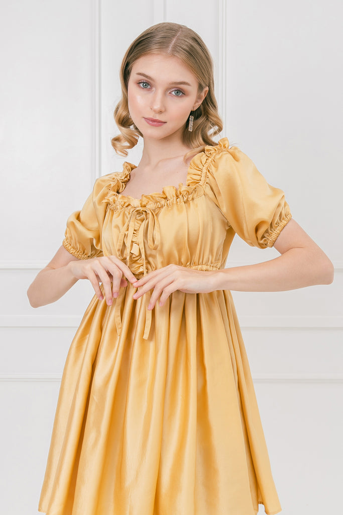 Twirl. Float. Dance. The Chérie Dress will have you twirling playfully into the garden like a fairy. Made with impeccable attention to detail, you will fall in love with the ruffled square neckline and bow details. With puffed sleeves and an empire waistline, the Chérie Dress will flatter your silhouette.